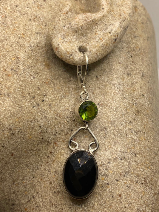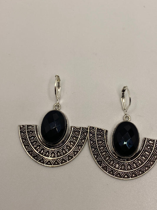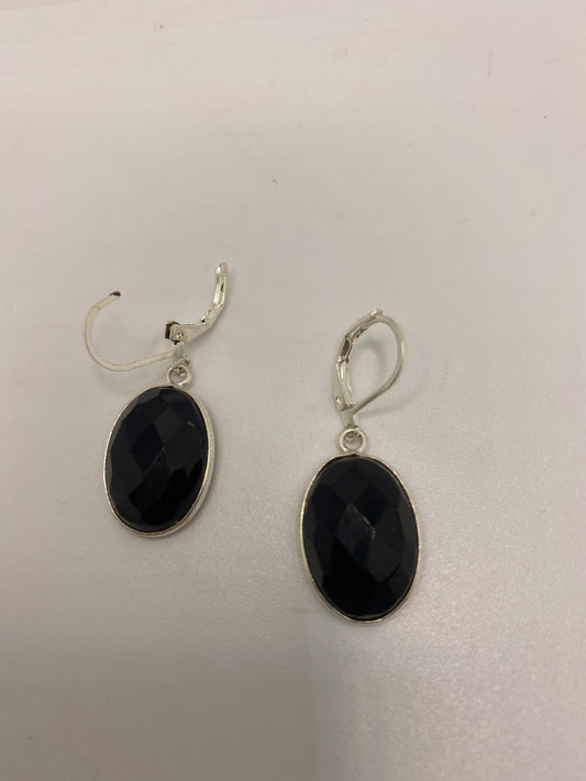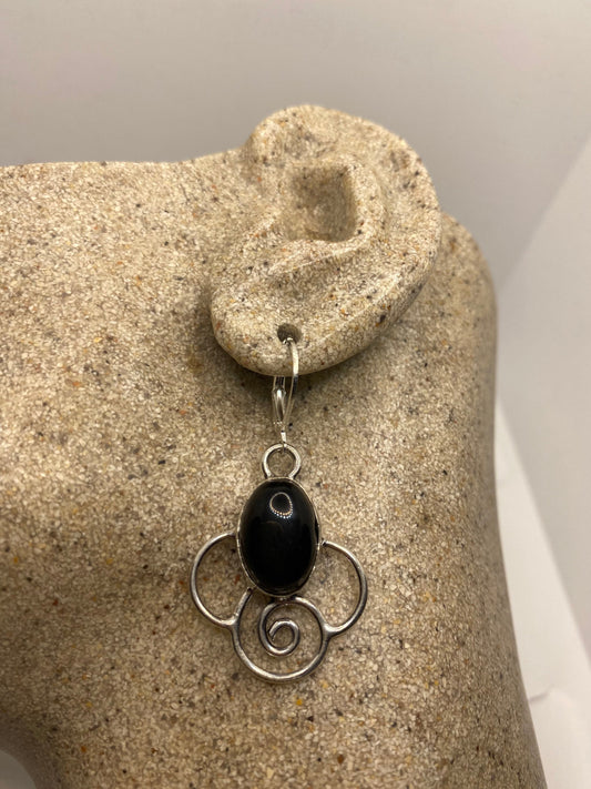 Vintage Black Earring Onyx 925 Sterling Silver Deco Dangle Chandelier