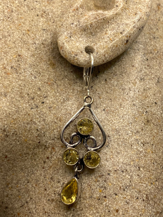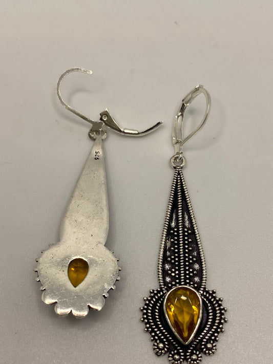 Vintage Golden Citrine Earrings 925 Sterling Silver Deco Dangle Chandelier