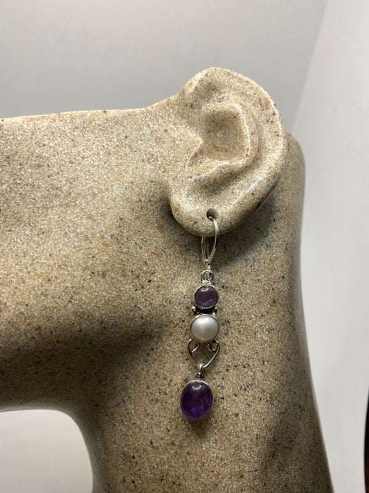 Vintage Clear Quartz Earrings 925 Sterling Silver