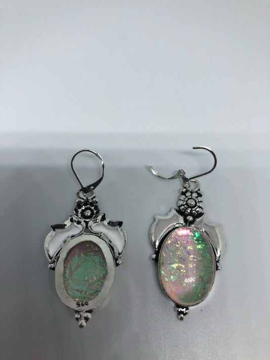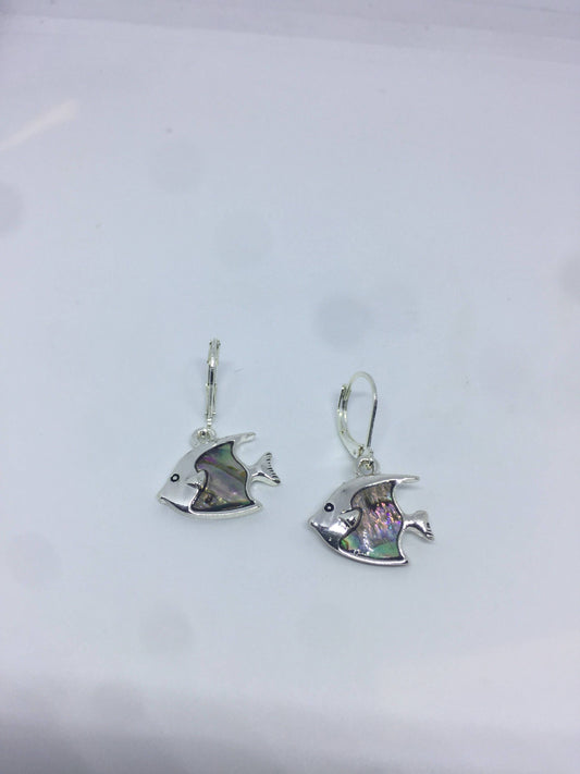 Vintage Handmade Silver Rainbow Abalone Angel Fish Earrings
