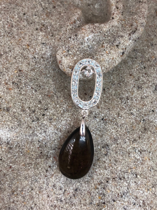 Vintage Genuine White Sapphire Smoky Quartz 925 Sterling Silver Dangle Earrings