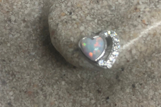 Vintage Fire Opal Earrings 925 Sterling Silver Heart button Studs