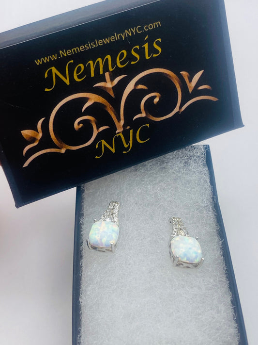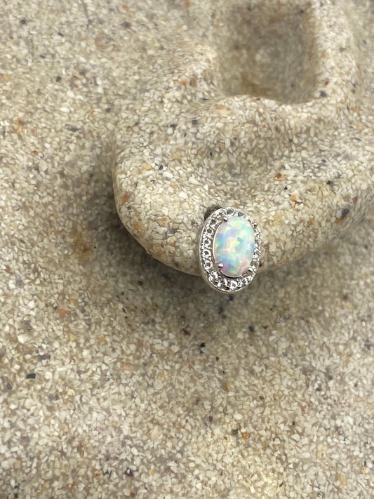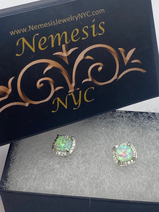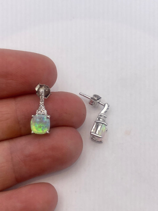 Vintage Opal Earrings 925 Sterling Silver Stud Button