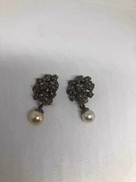 Antique Vintage Pearl 925 Sterling Silver Clip On Button Earrings