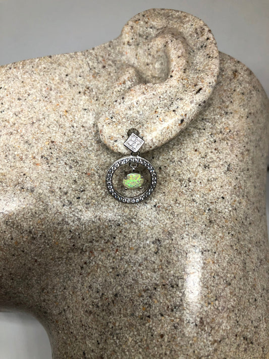 Vintage White Opal Earrings White Sapphire 925 Sterling Silver Dangle