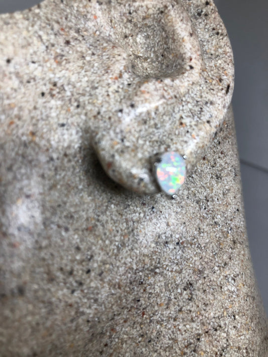 Vintage Opal Earrings 925 Sterling Silver Stud Button