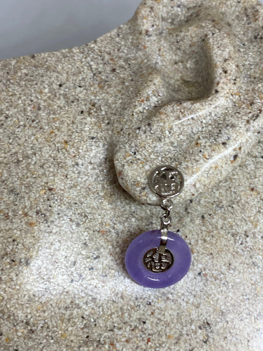 Vintage Genuine Purple Jade Gemstone Silver Earrings