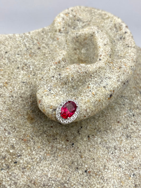 Vintage Sterling Silver Deep Pink Ruby Earrings