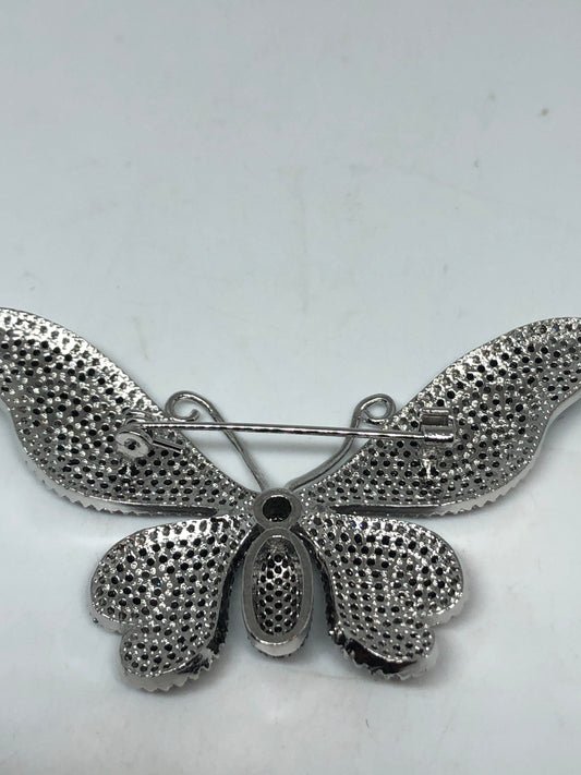 Vintage Black Crystal Gothic Styled Silver Finished Butterfly Broach