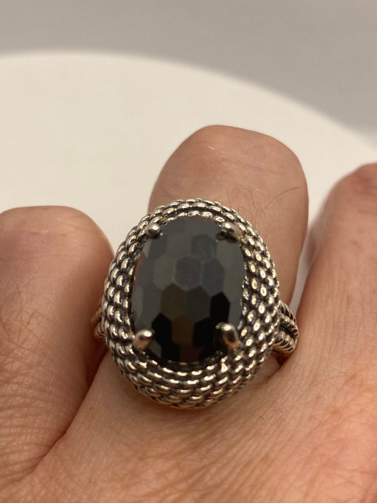 Vintage Black Enamel Stainless Steel Ring Size 6