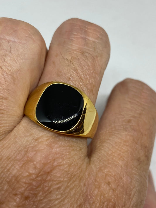 Vintage Black Onyx Golden Stainless Steel Mens Ring