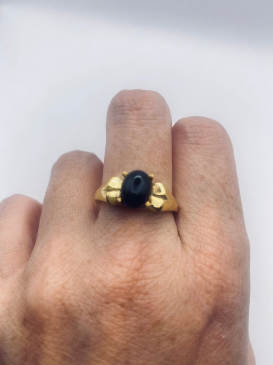 Vintage Black Onyx Golden Bronze Cocktail Ring