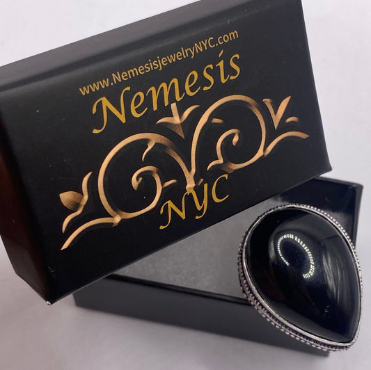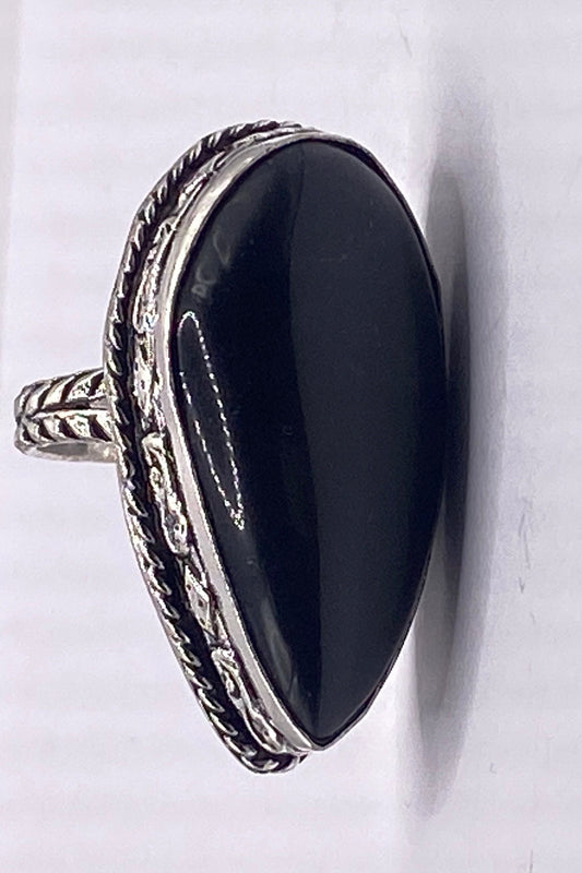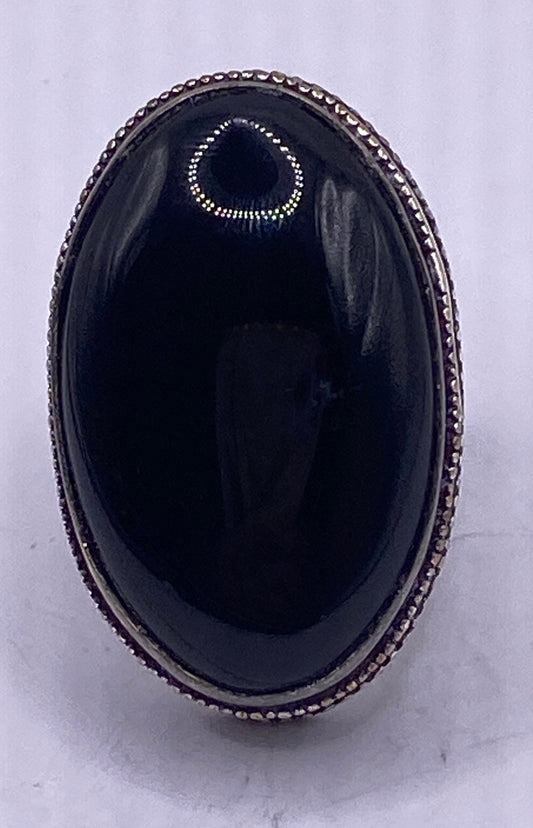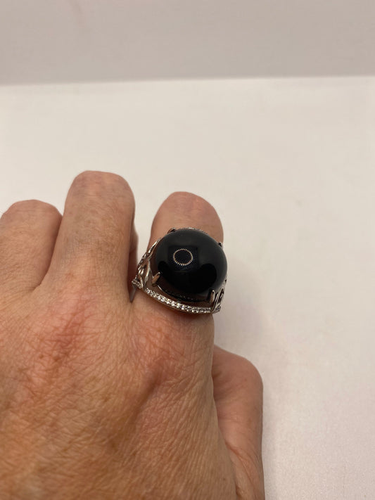 Vintage Black Onyx Silver Cocktail Ring Size 8.5