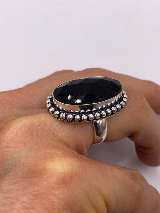 Vintage Black Onyx Silver Cocktail Ring Size 7