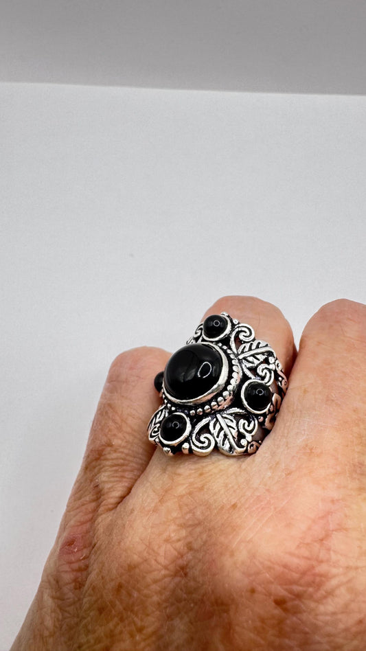 Vintage Black Onyx Silver Cocktail Ring Size 6.5