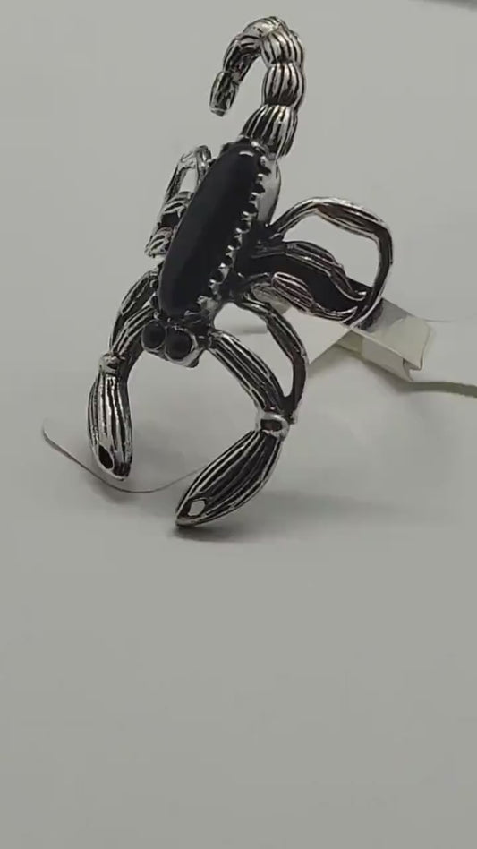 Vintage Black Onyx Scorpion Ring in 925 Sterling Silver with Genuine Onyx