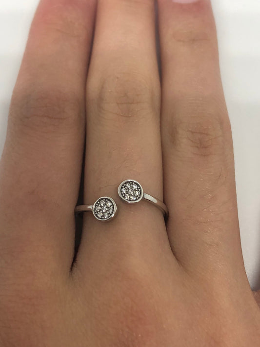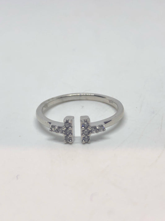 Brooklyn Line Micro Cubic Zirconia Crystal Sterling Silver Cross Ring