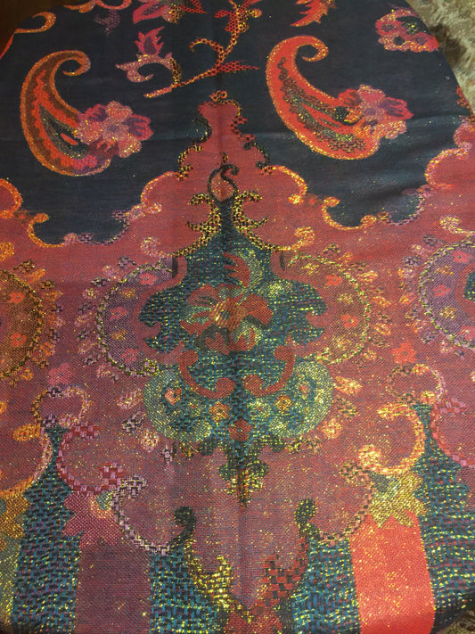Golden Vintage Navy Blue Red Purple Gold Metallic Paisley Brocade Pashmina Scarf Wrap