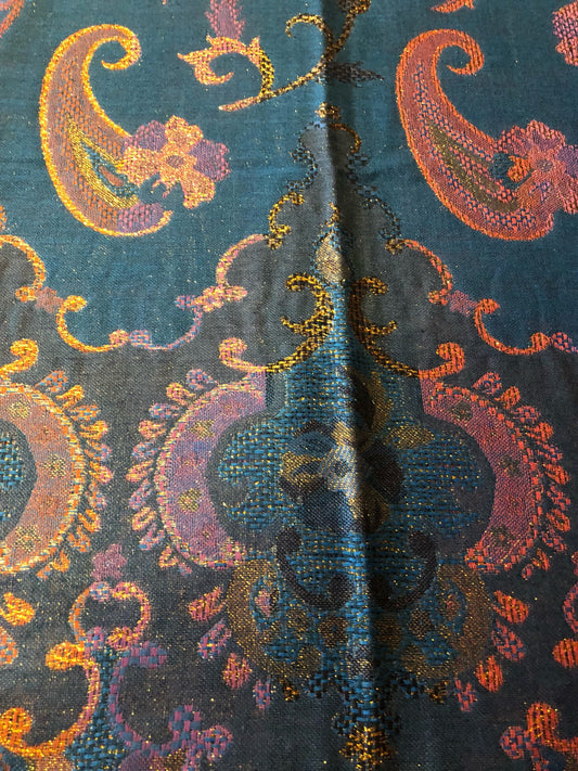 Golden Vintage Teal Purple Gold Metallic Paisley Brocade Pashmina Scarf Wrap