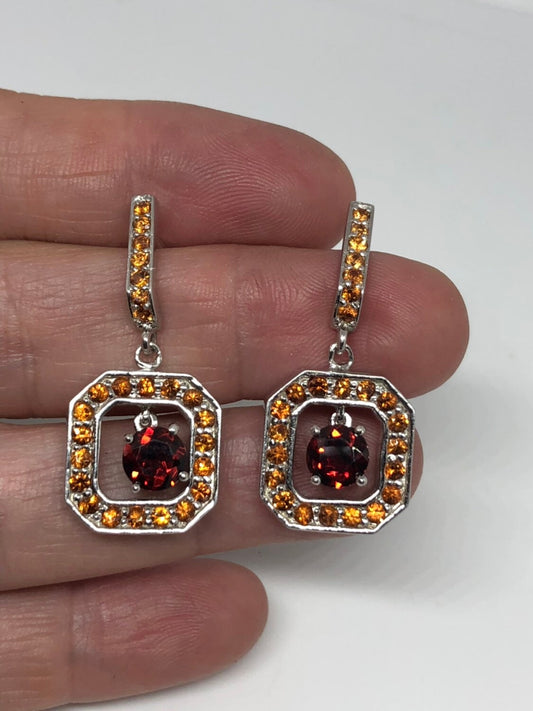Vintage Genuine Citrine Gemstone 925 Sterling Silver Stud Deco Earrings