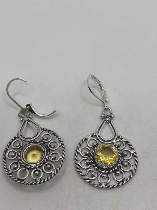 Vintage Citrine 925 Sterling Silver Lever Back Earrings
