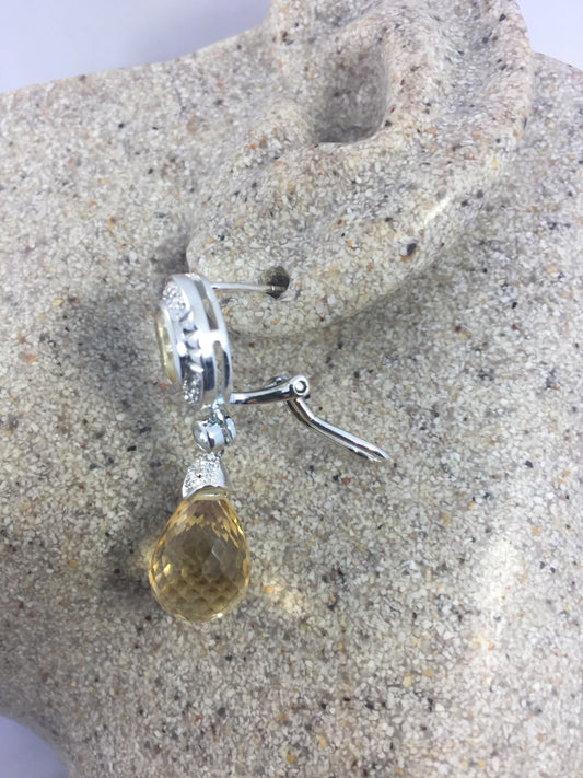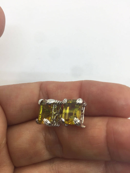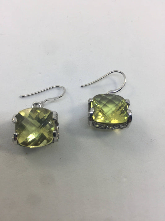 Vintage Genuine Golden Citrine Gemstone 925 Sterling Silver Dangle Earrings
