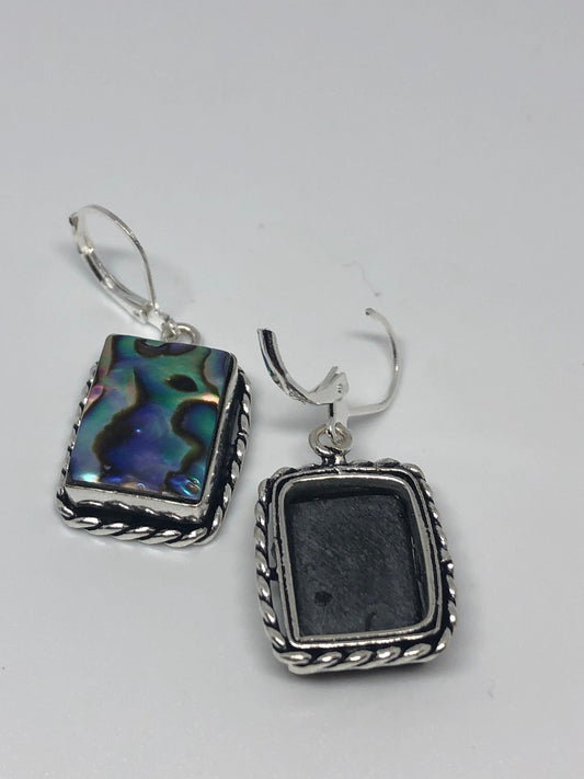 Vintage Handmade Silver Rainbow Abalone Earrings