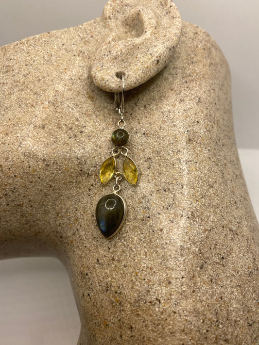 Vintage Citrine Labradorite 925 Sterling Silver Lever Back Earrings