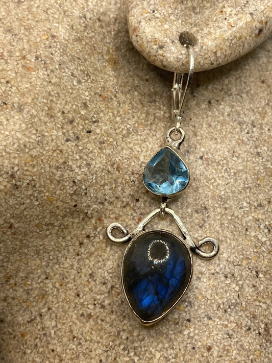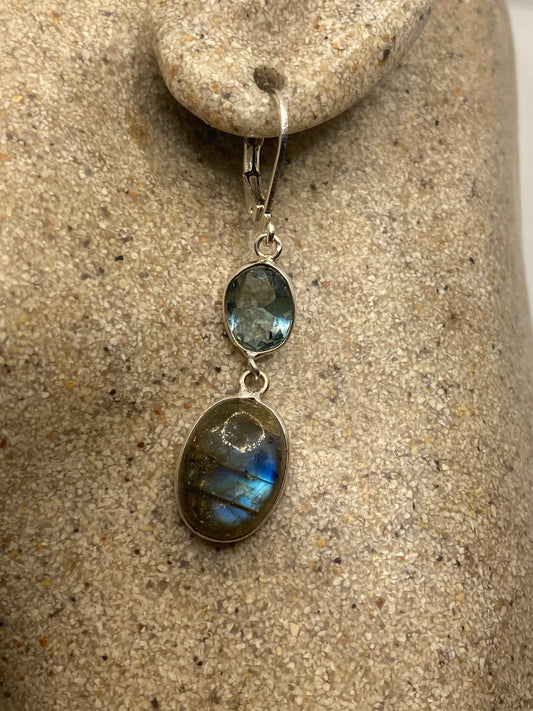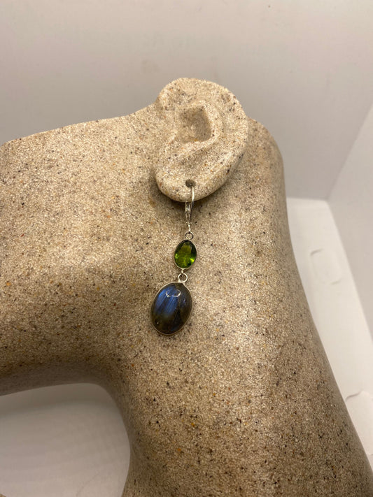 Vintage Labradorite Silver Dangle Earrings