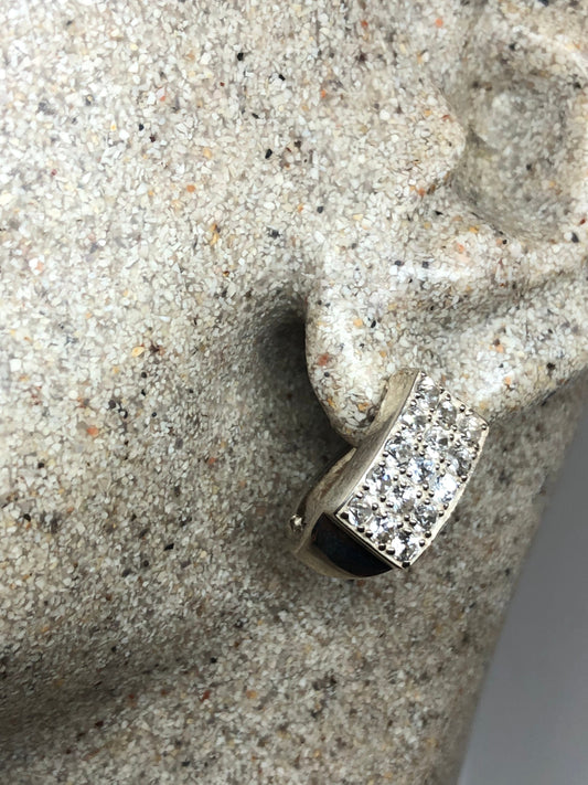 Vintage White Sapphire Earrings 925 Sterling Silver buttons