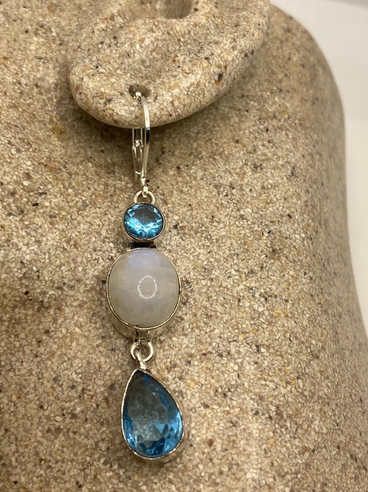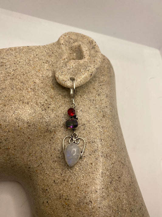Vintage Rainbow Moonstone Sterling Silver Lever Back Dangle Earrings
