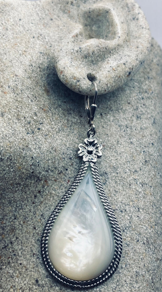 Vintage Mother of Pearl 925 Sterling Silver Dangle Earrings