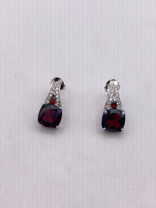 Vintage Bohemian Red Garnet Earrings 925 Sterling Silver Deco Dangle