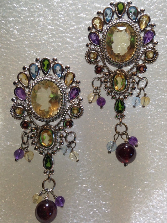 Vintage Citrine Garnet Filigree 925 Sterling Silver Dangle Chandelier Earrings