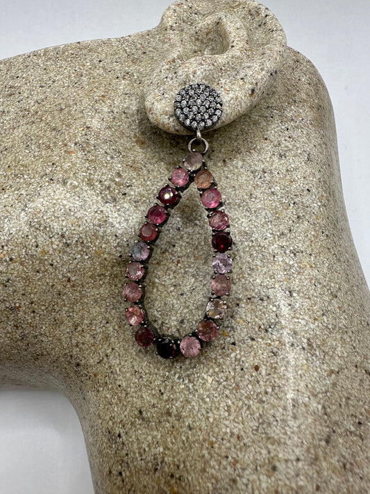 Vintage Genuine Mixed Pink Color Tourmaline 925 Sterling Silver Golden Chandelier Dangle Earrings