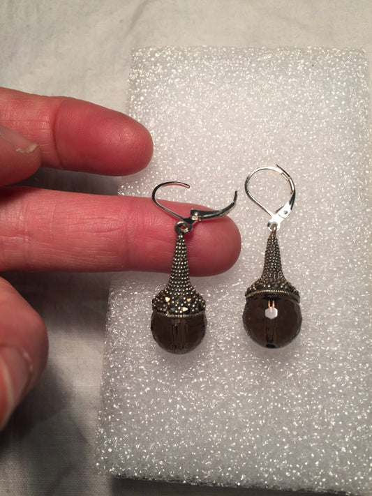 Vintage Marcasite Brown Smoky Topaz 925 Sterling Silver drop Chandelier Earrings