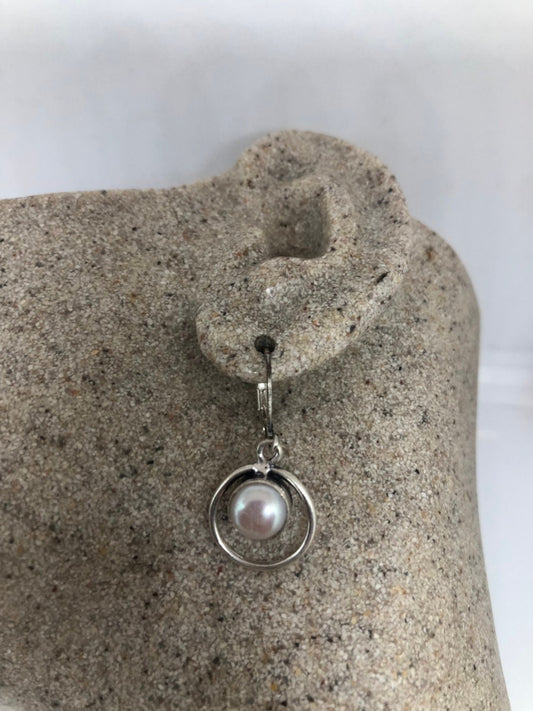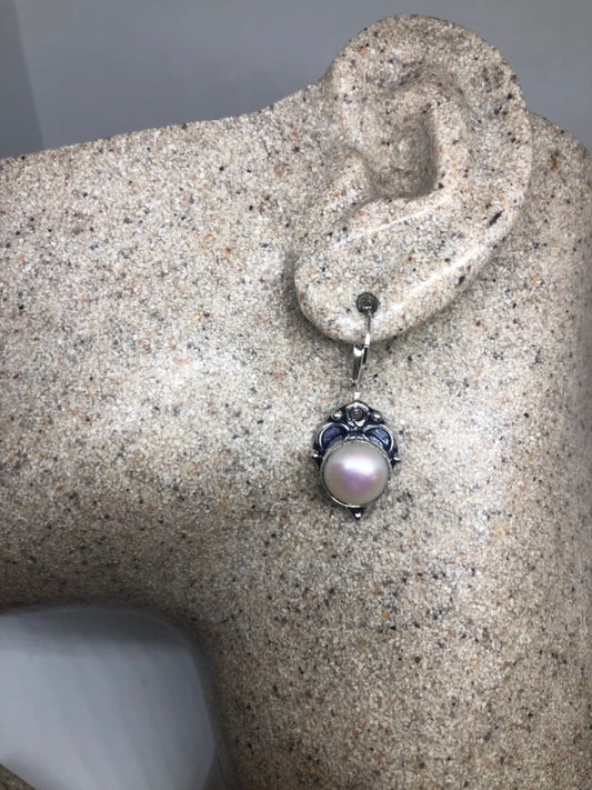 Vintage Genuine Pearl Sterling Silver Dangle Earrings