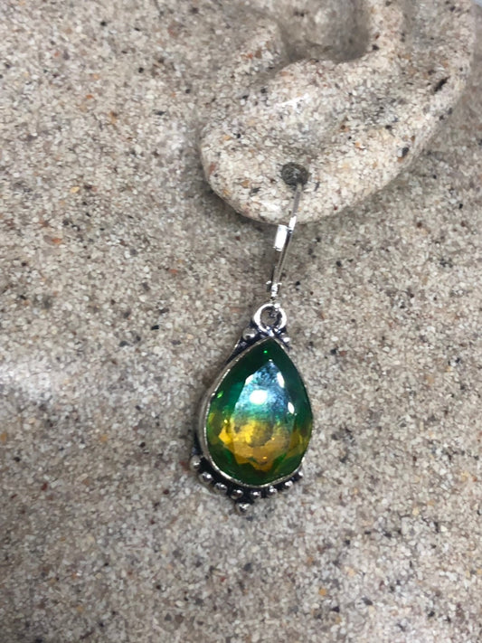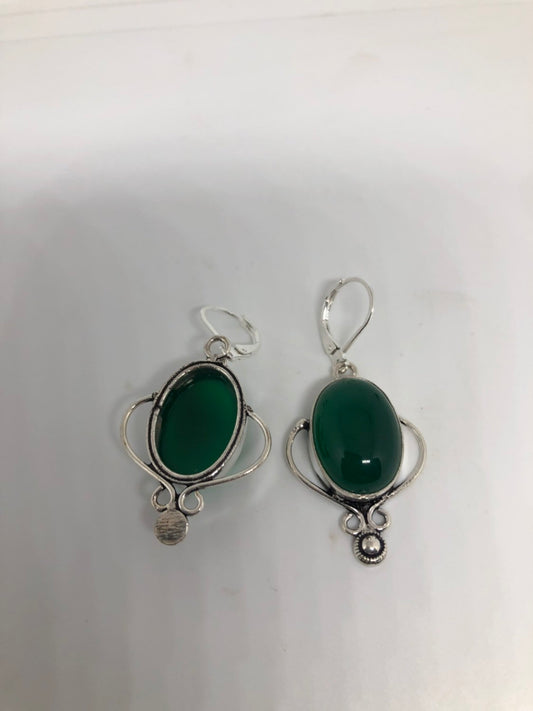 Antique Vintage Green Glass Silver Dangle Earrings