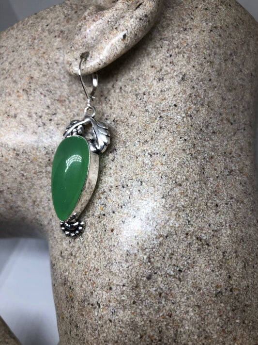 Vintage Fun Green Jade Gemstone Silver Earrings