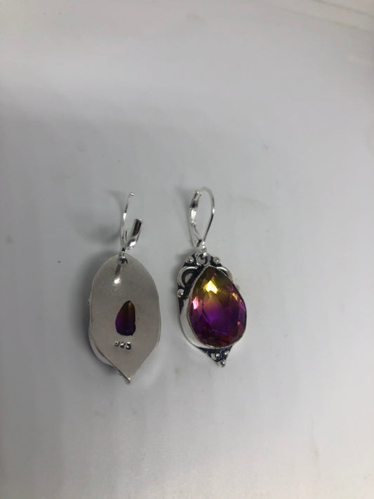 Antique Vintage Purple Volcanic Glass Silver Dangle Earrings