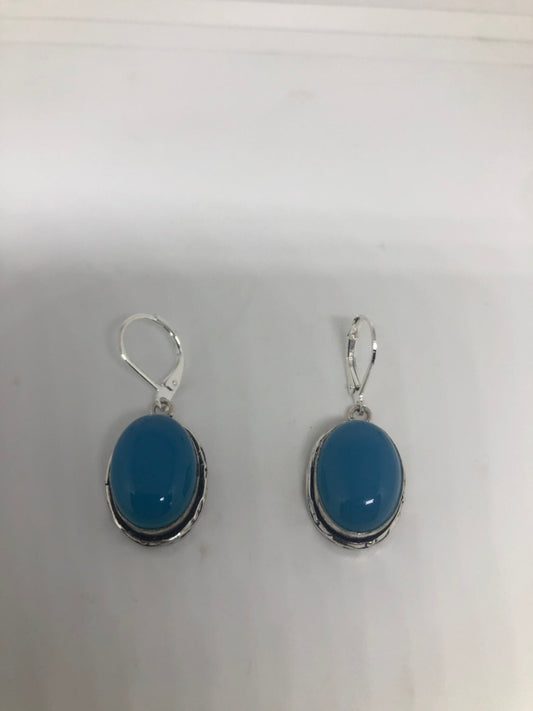 Vintage Blue Chalcedony Earrings Silver Dangle