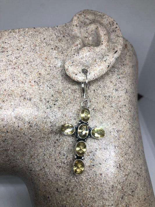 Vintage Genuine Citrine Gemstone 925 Sterling Silver Drop Earrings