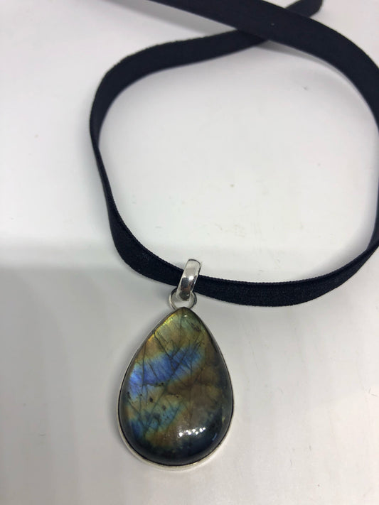 Vintage Silver Genuine Labradorite Gemstone Necklace.