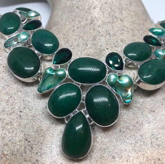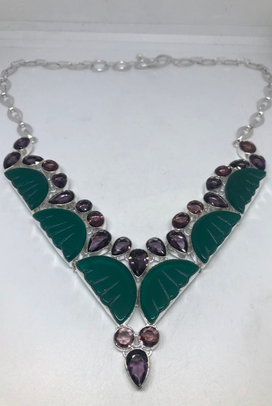 Vintage Green Chysoprase Agate Silver Finish Necklace