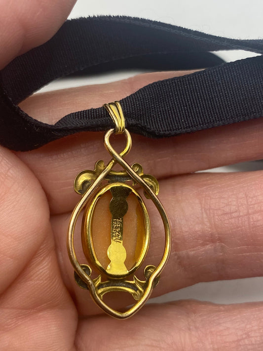 Vintage Abalone Cameo Yellow Gold Filled Necklace Pin Choker