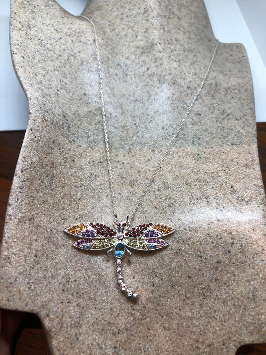 Handmade 925 Sterling Silver Vintage Dragonfly Choker Necklace