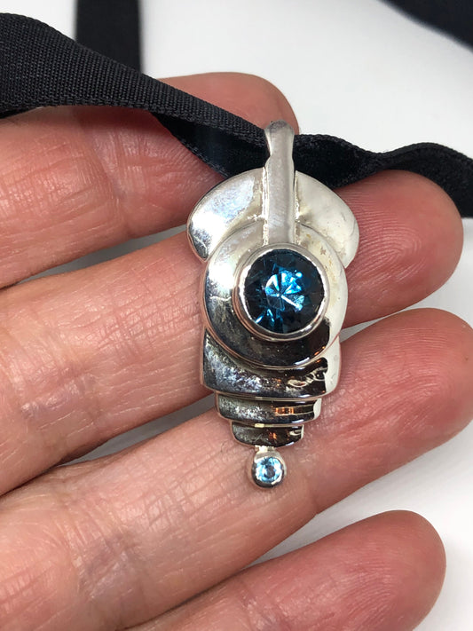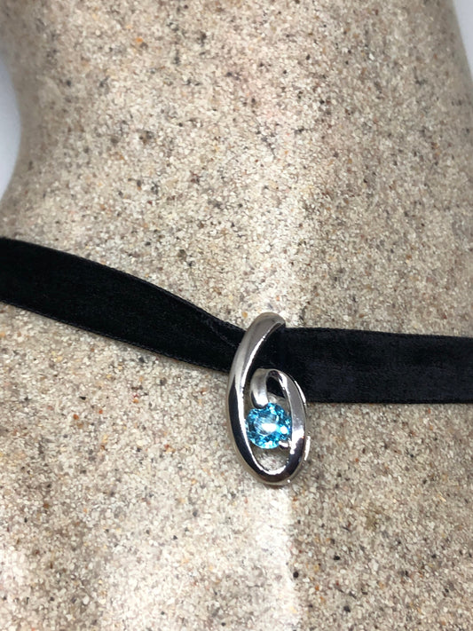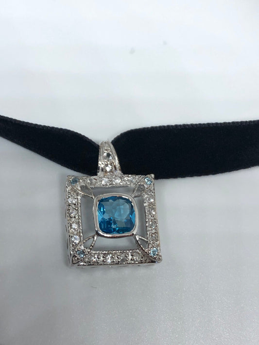 Vintage Genuine Blue Topaz 925 Sterling Silver Deco Choker Necklace Pendant