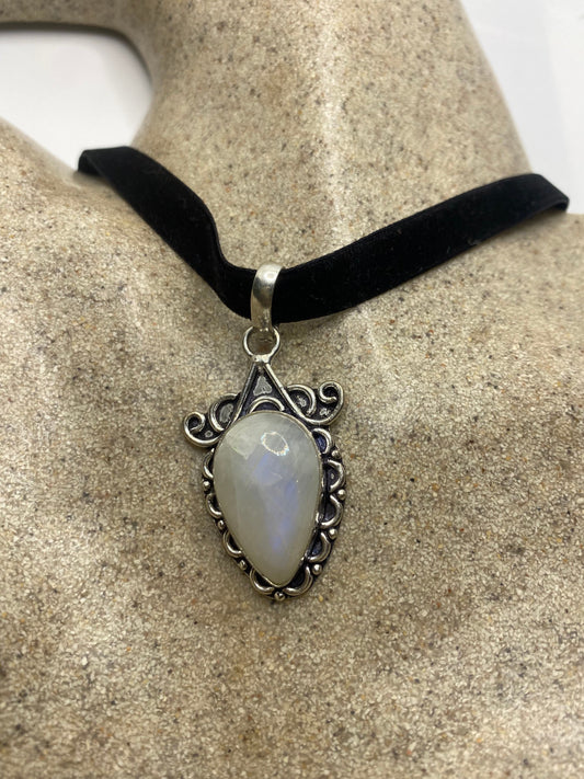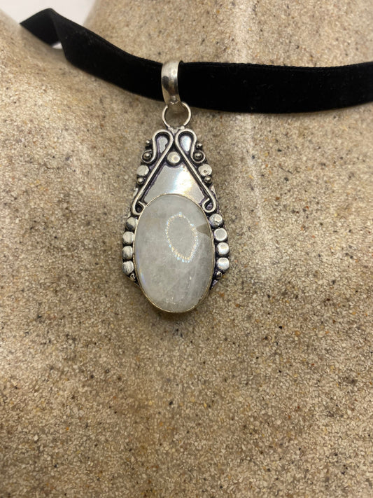 Vintage Rainbow Moonstone Choker Pendant Necklace