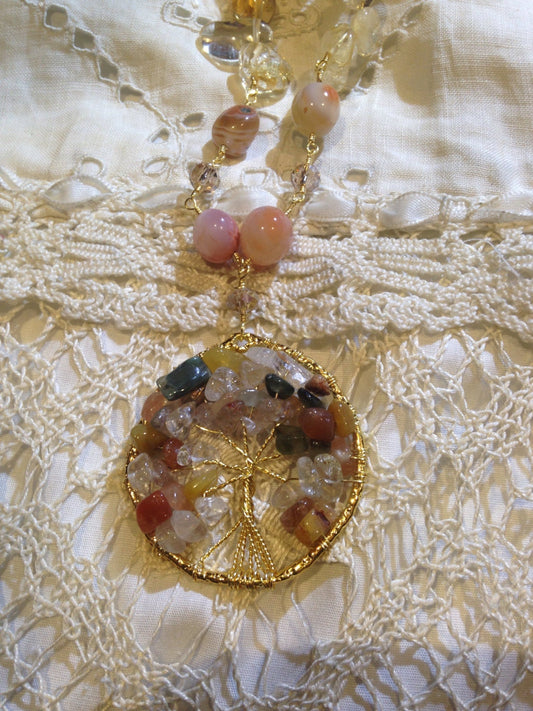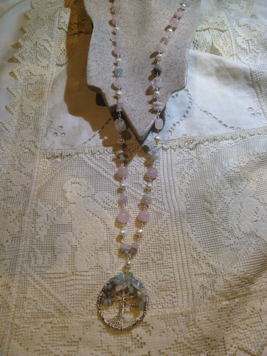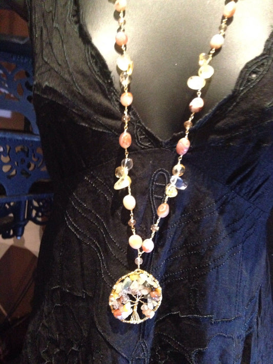 Hand Wrapped Pearl and Crystal Tree of Life Necklace