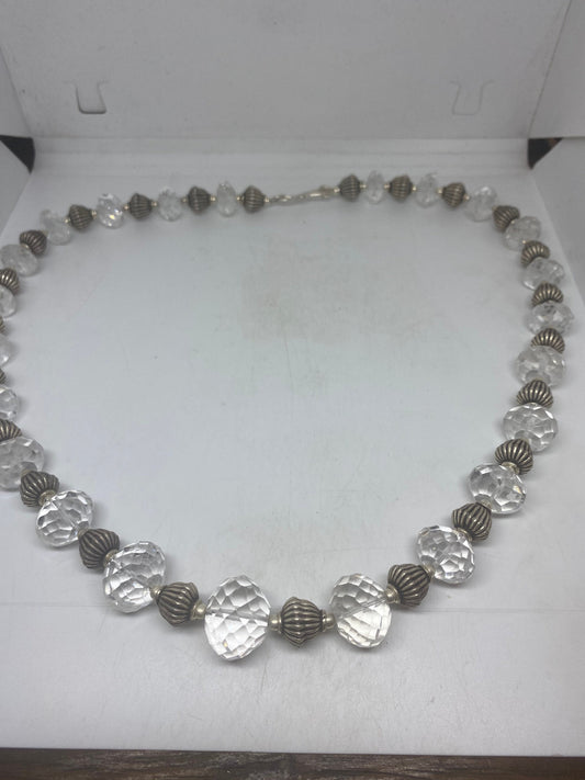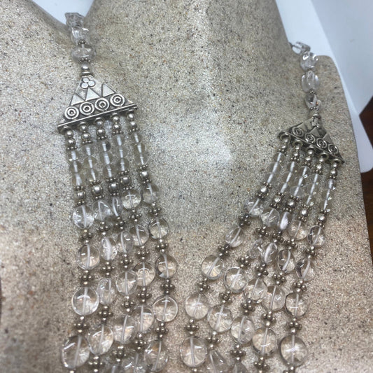 Vintage Moroccan Clear Quartz Crystal Necklace with 925 Sterling Silver